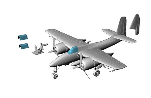 Równie ciekawie zapowiadają się plany wydawnicze firmy FLY. Producent zajął się tematem ciężkiego samolotu myśliwsko szturmowego F-6F Tigercat. Model jest opracowywany w sakli 1/72 i ma być dostępny aż w czterech wariantach widocznych poniżej.