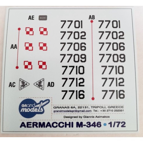 Grand Models: Polish Decals for Aermacchi M-346 Skala: 1:72 Nr kat: DEP 001 Typ: kalkomania |