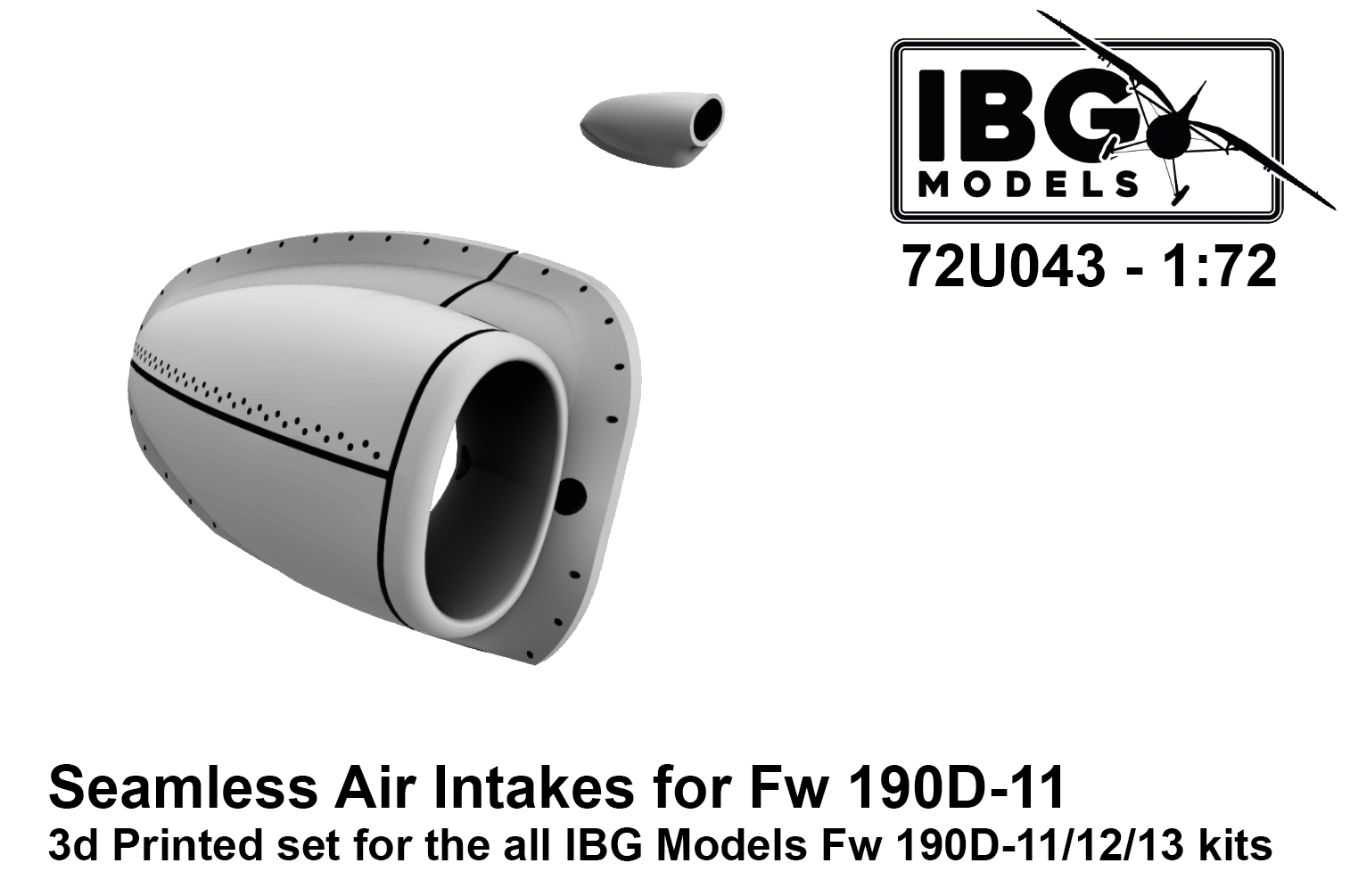 IBG MODELS: Seamless Air intakes for Fw190D-11 3d Printed set for the all IBG Models Fw190D-11/12/13 kits Skala: 1:72 Nr kat: 72U043 Typ: wydruk 3D Dedykowany do: IBG Models |