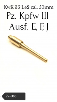 Martola: KwK 36 L42 cal. 50mm Skala: 1:72 Nr kat: 72-085 Typ: lufa metalowa Dedykowany do: różne |