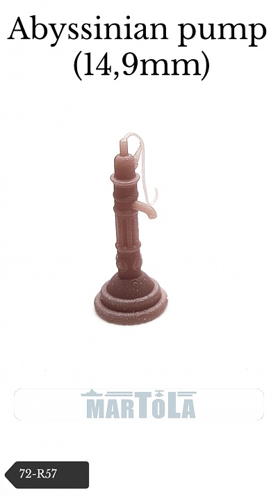 Martola: Abyssinian pump (14,9mm) Skala: 1:72 Nr kat: 72-R57 Typ: wydruk 3D Dedykowany do: różne |