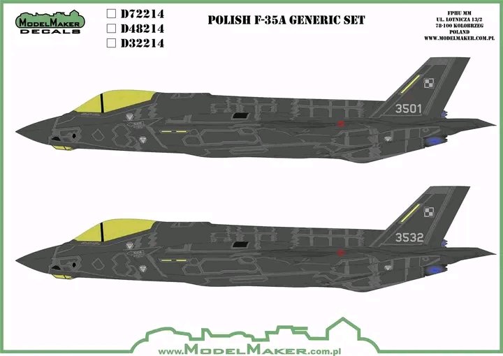 Warto zwrócić uwagę, że ten producent jako jedyny zareagował na prezentację pierwszego polskiego F-35, zapowiadając wydanie kalkomanii z podstawowymi oznaczeniami dla naszych „Husarzy”. Zestawy dostępne będą zapewne niedługo, wiadomo, że w trzech podstawowych skalach.