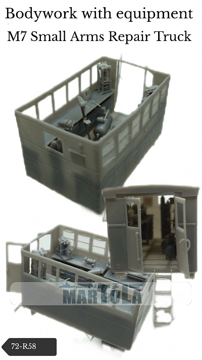 Martola: Bodywork with eguipment M7 Small Arms Repair Truck Skala: 1:72 Nr kat: 72-058 Typ: wydruk 3D Dedykowany do: różne |