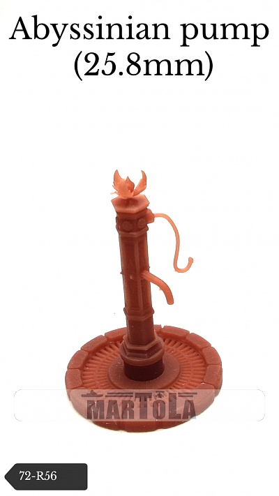 Martola: Abyssinian pump (28,8mm) Skala: 1:72 Nr kat: 72-R56 Typ: wydruk 3D Dedykowany do: różne |
