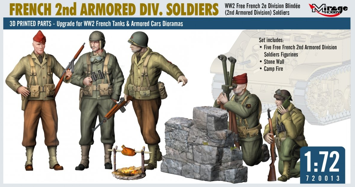 Mirage Hobby: French 2nd Armoded Div. Soldiers Skala: 1:72 Nr kat: 720013 Opcje malowania: 1 Typ modelu: wydruk 3D |