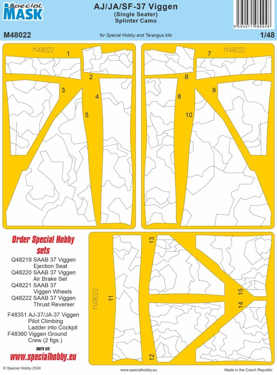 Special Mask: AJ/JA/SF-37 Viggen Two Seater Splinter Camo Skala: 1:48 Nr kat: M48023 Typ: maski Dedykowany do: Special Hobby |
