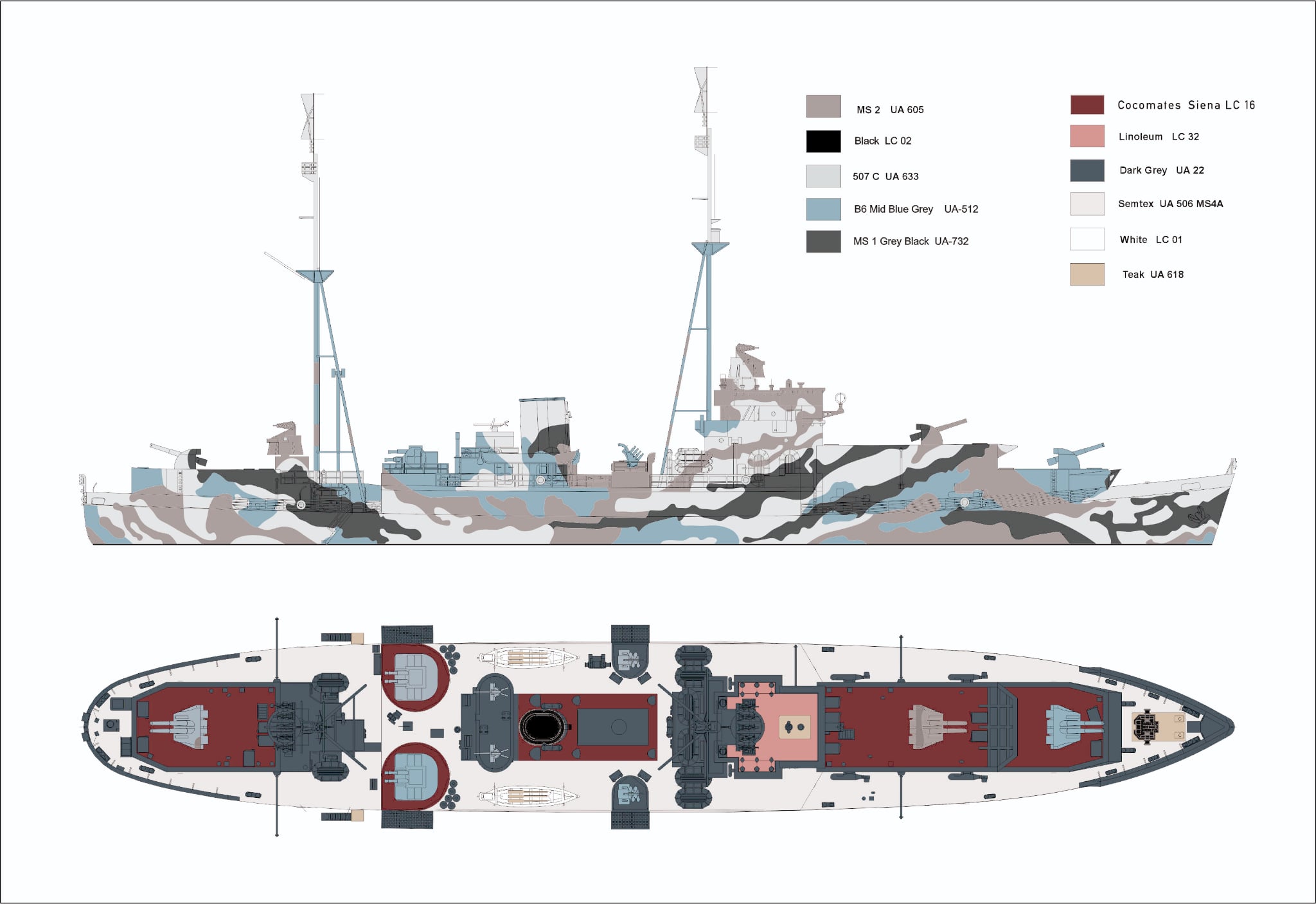 W chwili obecnej trwają ostatnie przygotowania do uruchomienia produkcji modeli brytyjskich okrętów obrony przeciwlotniczej HMS „Palomares” i „HMS „Pozarica”. Poniżej prezentujemy schematy malowania obu jednostek, trzeba przyznać, że bardzo efektowne.