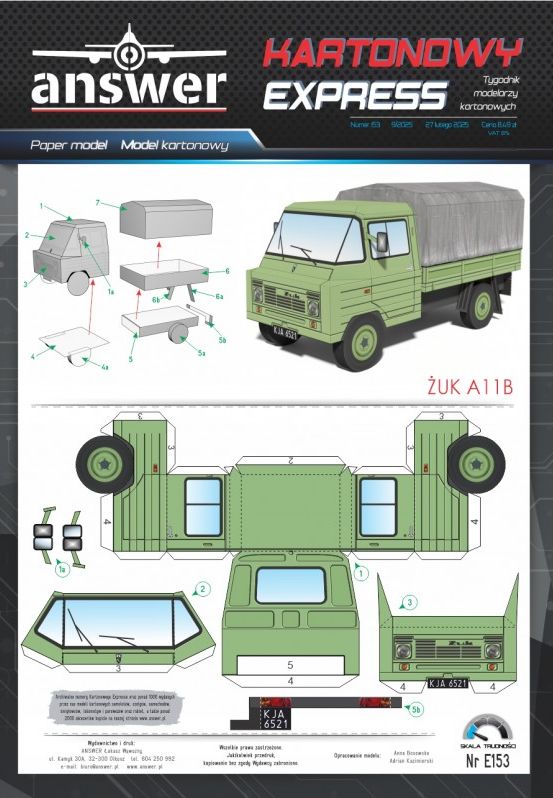 Kartonowy Exspress: Żuk A11B Skala: - Nr kat: No. E153 Typ modelu: model kartonowy |