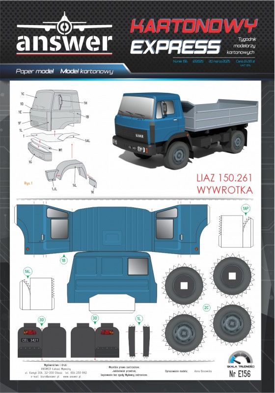 Kartonowy Exspress: LIAZ 150.261 Wywrotka Skala: - Nr kat: No. E156 Typ modelu: model kartonowy |