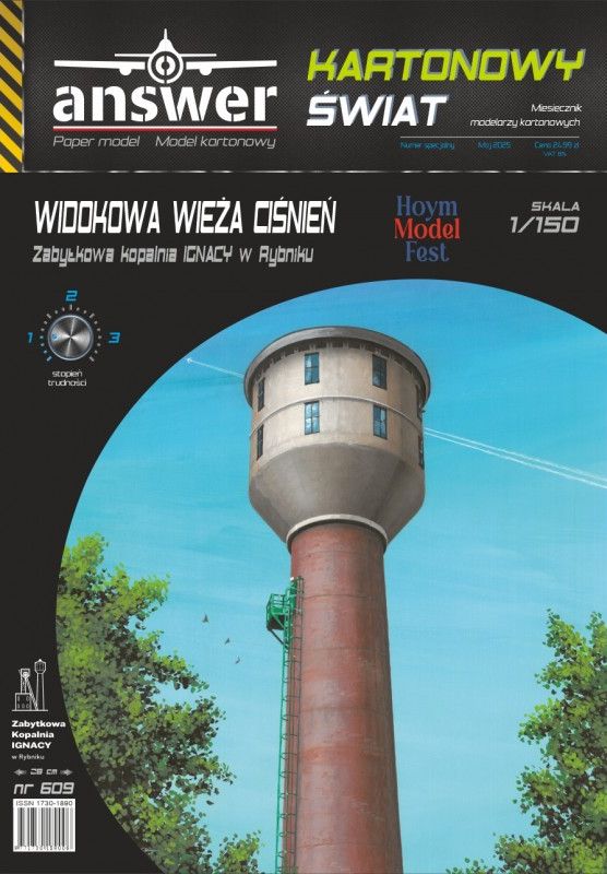 Kartonowy Świat: Widokowa wieża ciśnień, KWK Ignacy w Rybniku Skala: 1:150 Nr kat: No. 609 Typ modelu: model kartonowy |