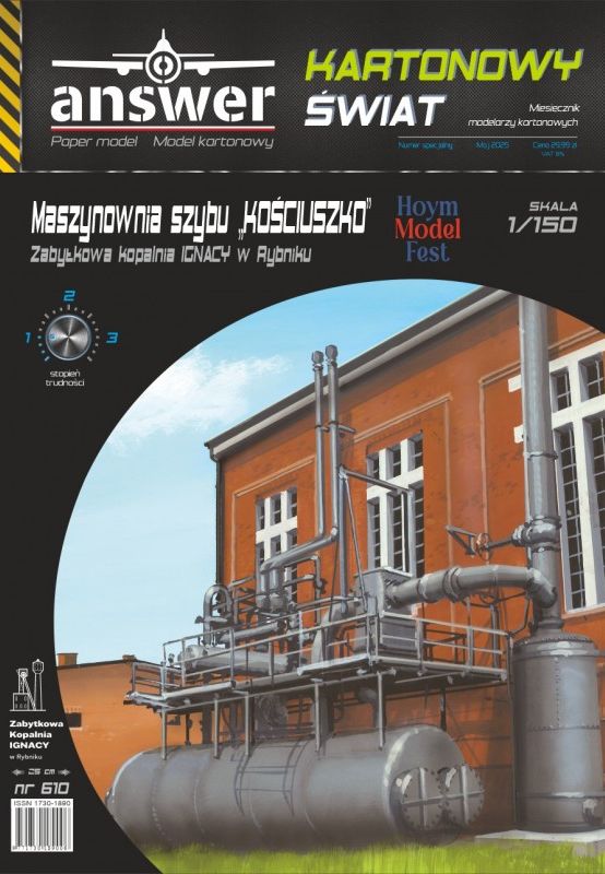 Kartonowy Świat: Maszynownia szybu "Kościuszko" KWK Ignacy w Rybniku Skala: 1:150 Nr kat: No. 610 Typ modelu: model kartonowy |