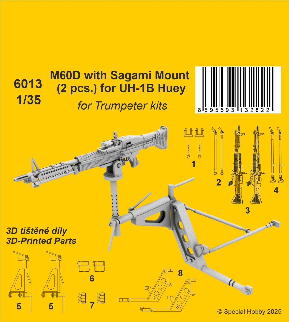 CMK: M60D witch Sagami Mount for UH-1B Huey Skala: 1:35 Nr kat: 6013 Typ: odlew żywiczny, wydruk 3D Dedykowany do: Trumpeter |