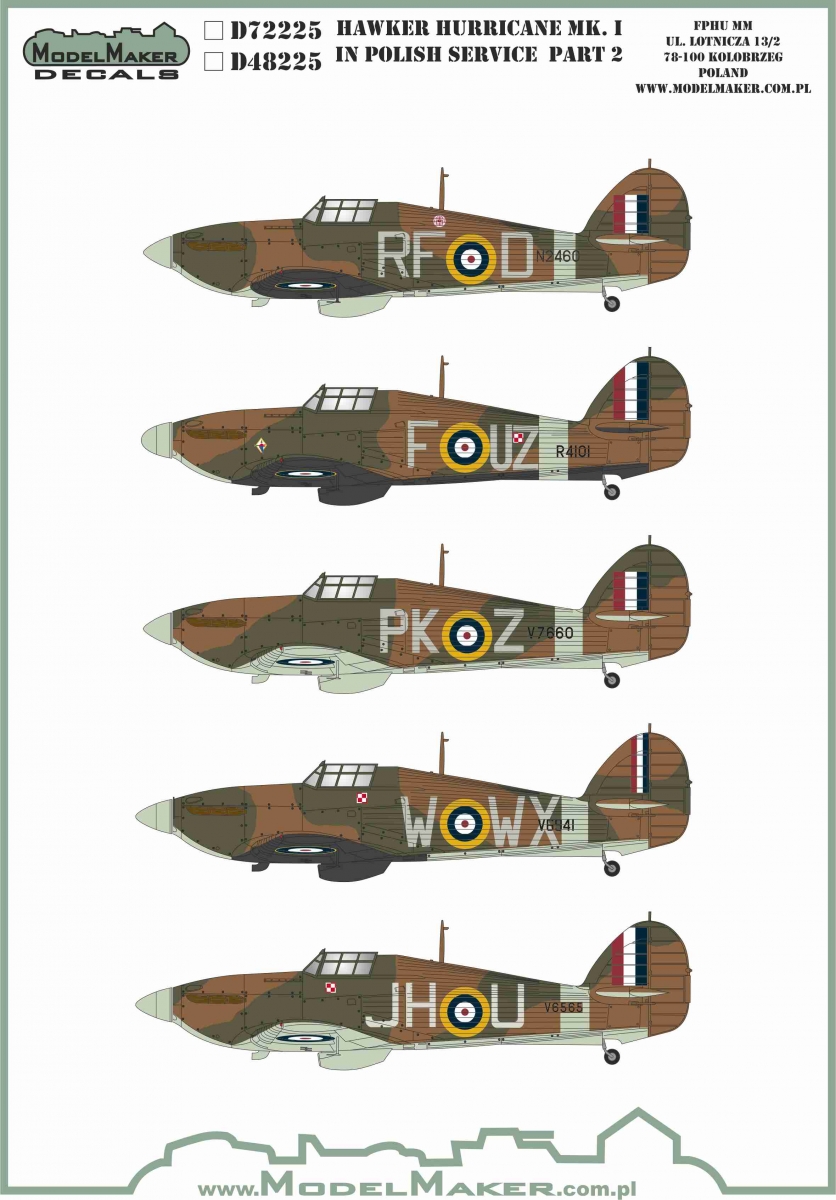 Podczas zbliżającej się edycji Bałtyckiego Festiwalu Modelarskiego jest zapowiadana premiera kolejnego zestawu kalkomanii do modeli samolotów myśliwskich Hawker Hurricane Mk.I w polskich barwach.