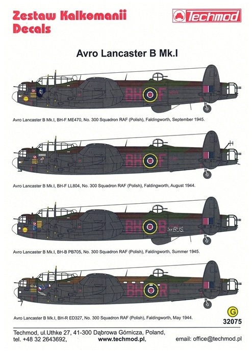 Kalkomanie umożliwiające budowę modeli bombowców Avro Lancaster B Mk.I w skali 1/32 to nowa propozycja firmy Techmod.