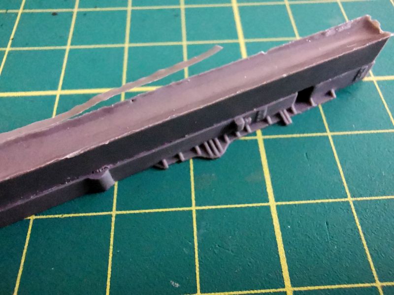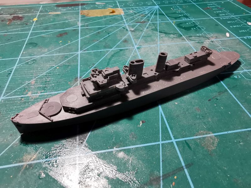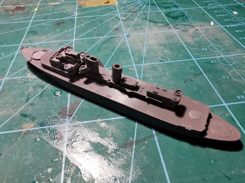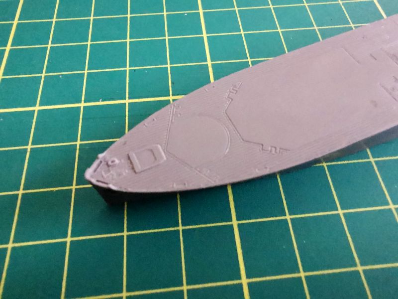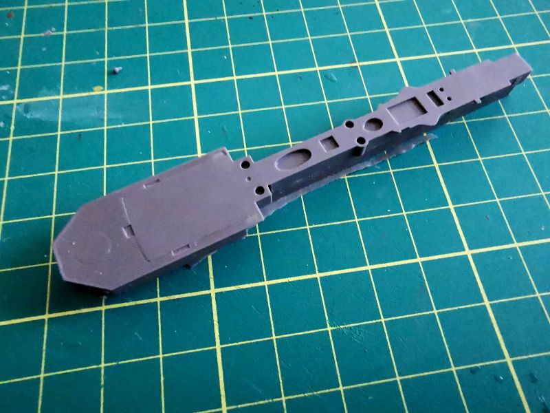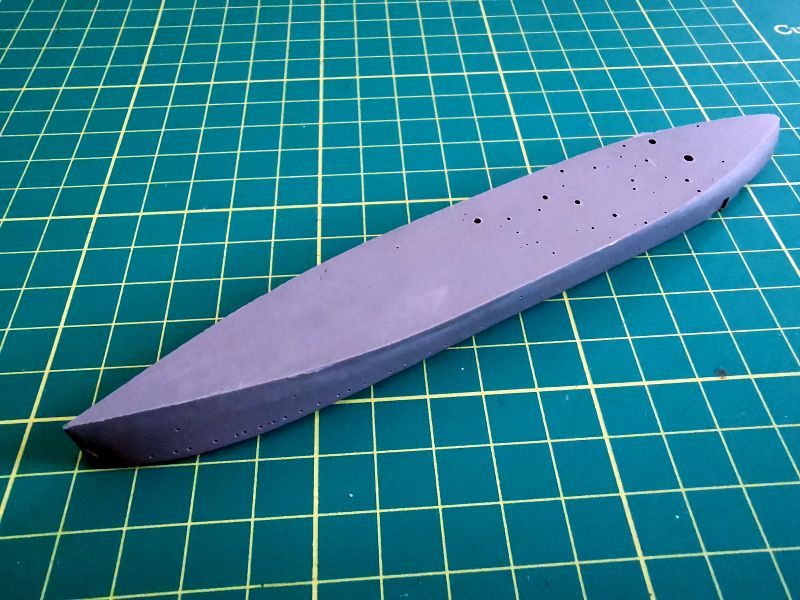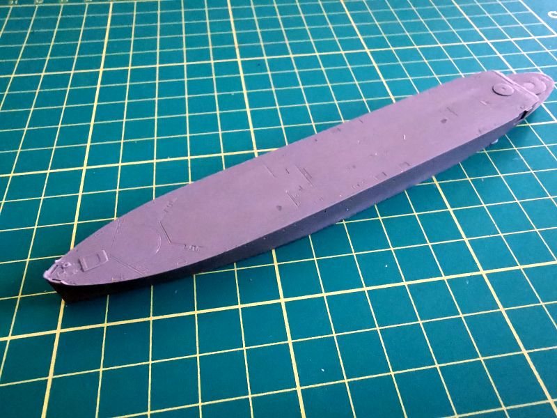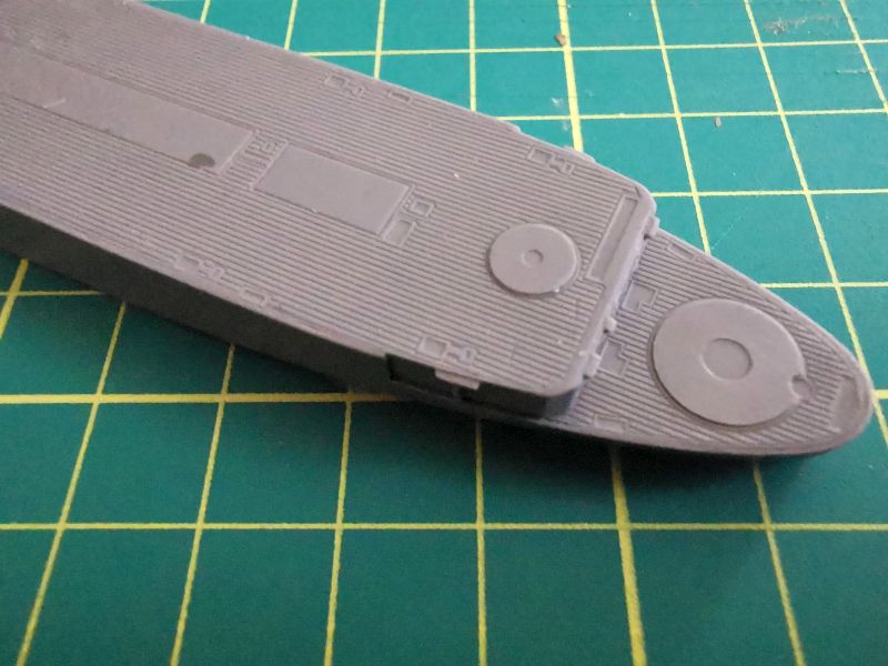 Podstawowym elementem zestawu jest oczywiście kadłub. Jest to pojedynczy odlew z bardzo ładnie i szczegółowo odwzorowaną fakturą burt i pokładu. Mnie osobiście urzekły w tych okrętach stewy dziobowe z wykuszami na kluzy kotwiczne , co nadaje im eleganckiego i nowoczesnego wyglądu. Z Modelarskiego punktu widzenia jest ważne, że obróbka kadłuba ogranicza się jedynie to przetarcia linii wodnej kostką ścierną, nie ma żadnego piłowania ani odcinania.
