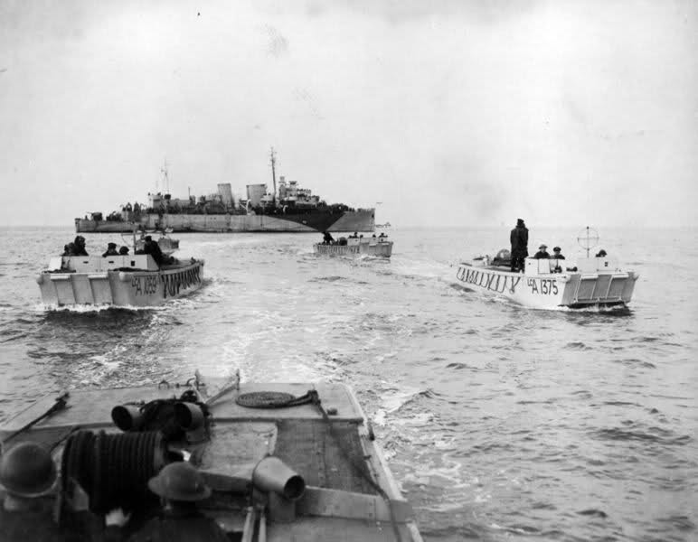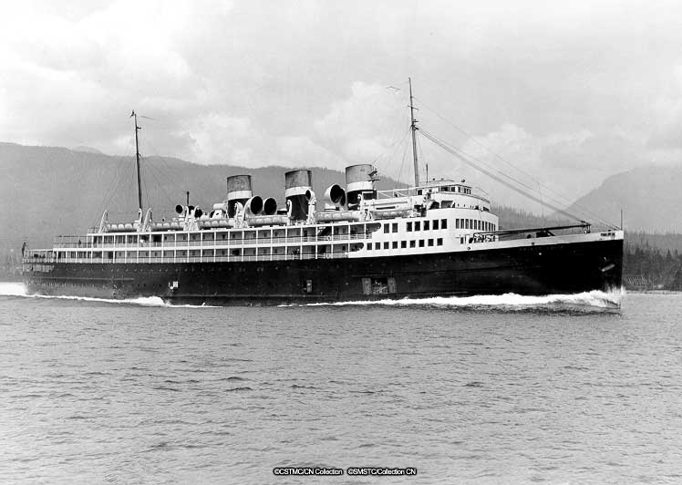 Prince David jako statek pasażerski (źródło: Internet) | Jako HMCS Prince David, okręt desantowy podczas Lądowania w Normandii, 6 czerwca 1944 r. (źródło: Internet) |