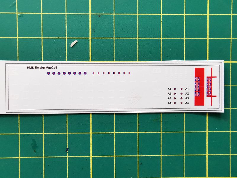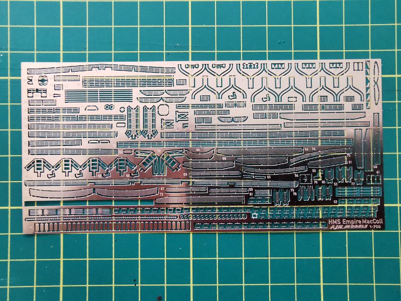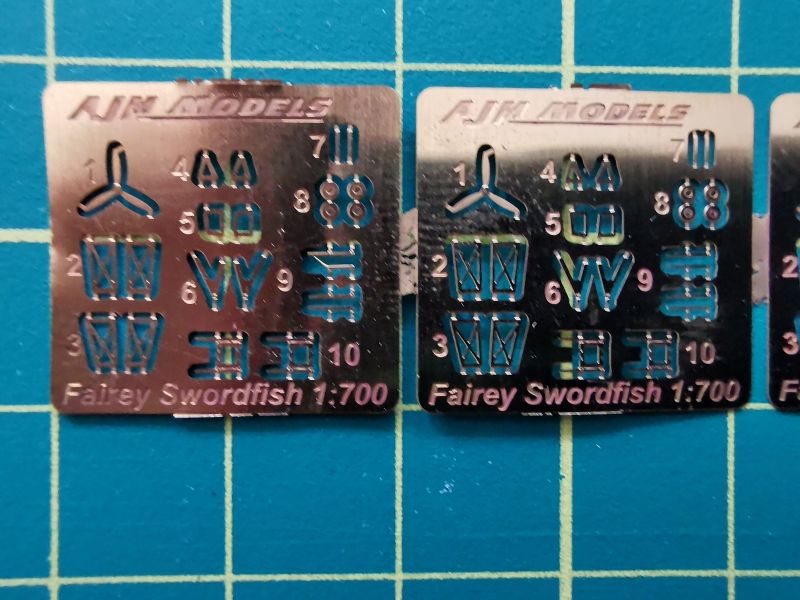 Grupę lotniczą stanowiły samoloty bombowo – torpedowe Fairey Swordfish. W moim zestawie było ich pięć i chyba tyle będzie w zestawach, które trafią do rąk modelarzy. Nie trzeba oczywiście wykorzystywać wszystkich. Są one identyczne jak w modelach statków MAC wydanych wcześniej. Każdy z nich składa się z części żywicznych uzupełnionych blaszką z detalami. Oznaczenia znajdują się na arkusiku kalkomanii. NA nim znalazły się oznaczenia umieszczone na pokładzie lotniczym, podziałki zanurzenia oraz bandery.