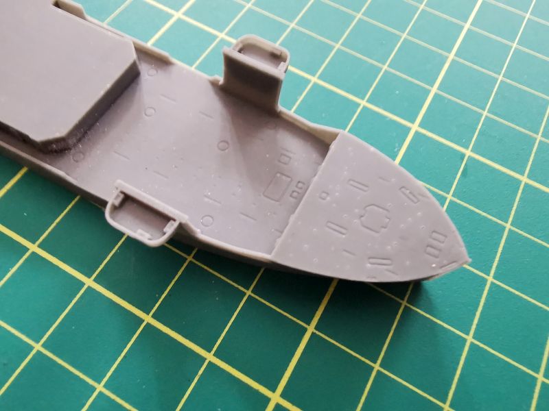 Pokład startowy to także pojedynczy odlew. Co ważne nie jest on przesadnie gruby, dzięki czemu wystarczy to nieco podszlifować od dołu i wyrównać boki. Poza tym ma bardzo ładnie, delikatnie i wyraźnie zarazem odtworzoną fakturę powierzchni.