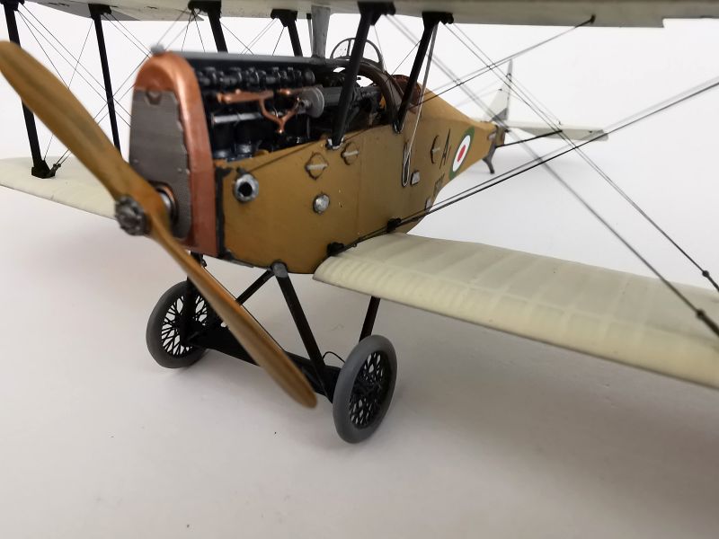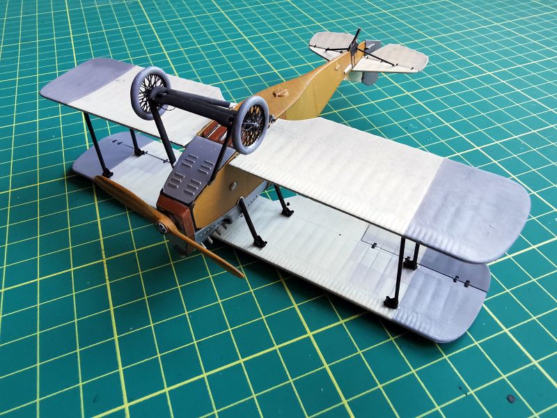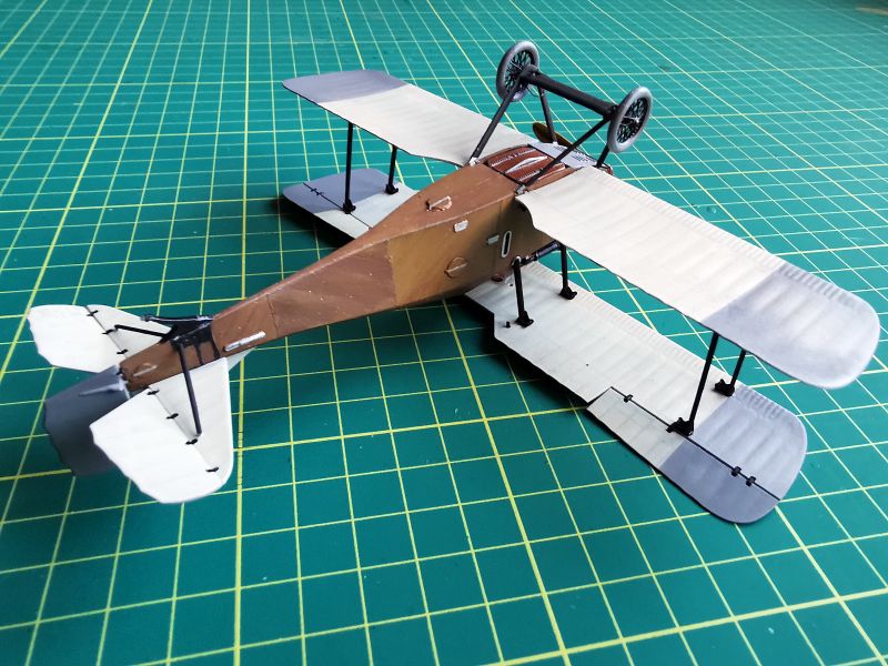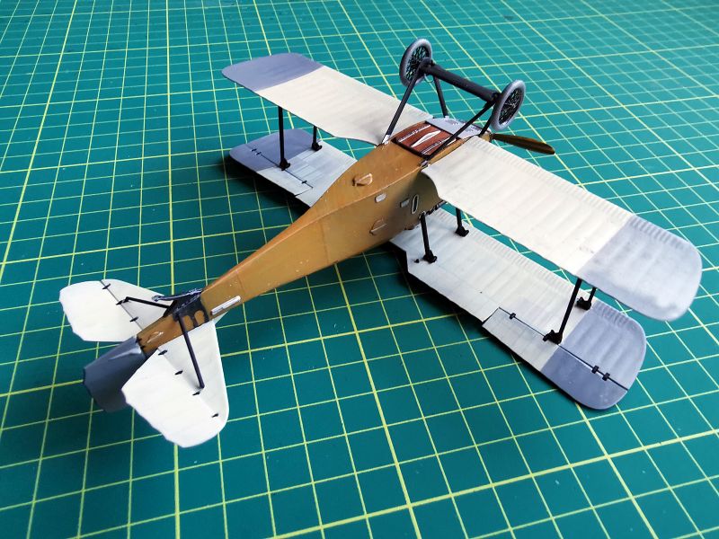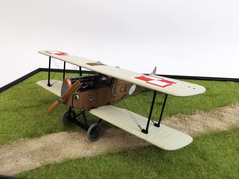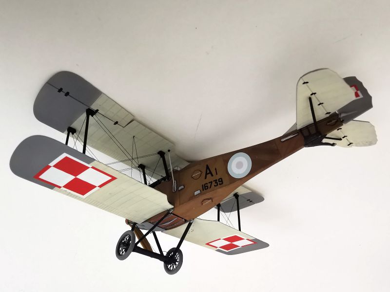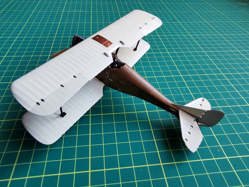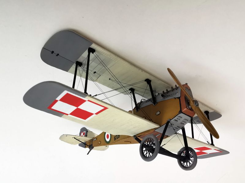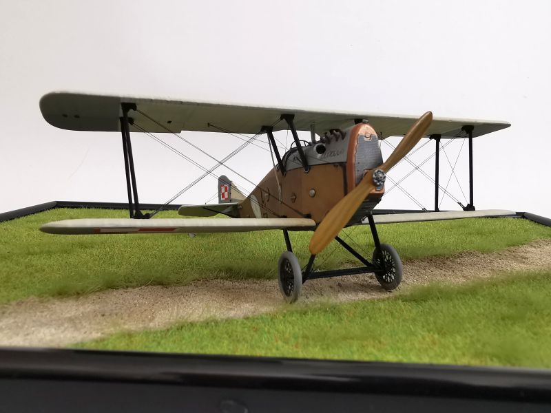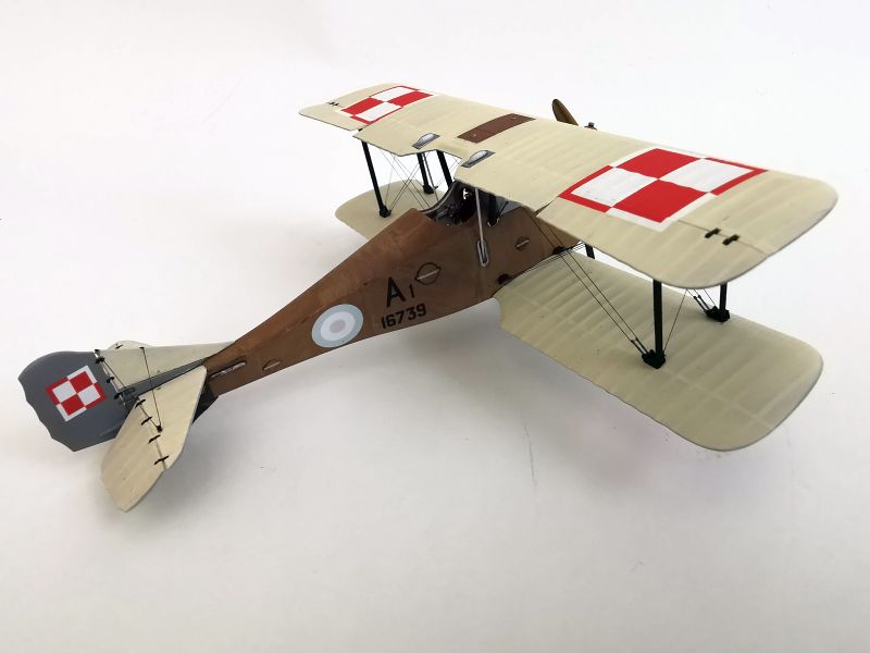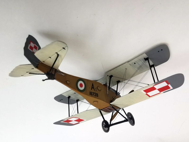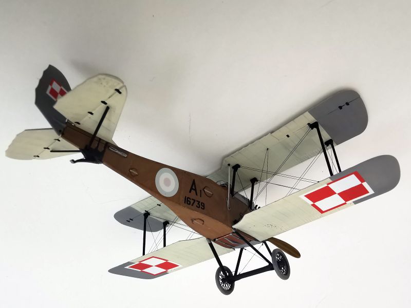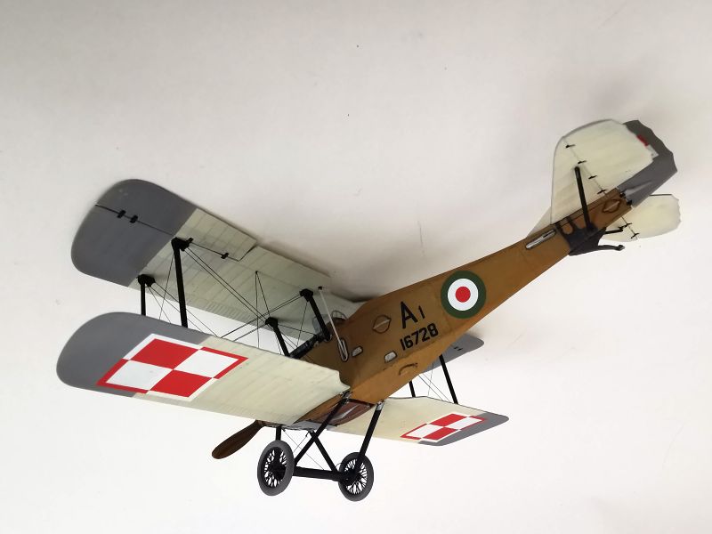 Mając modele sklejone w całość, mogłem przystąpić w sumie do najbardziej przyjemnego etapu budowy obu modeli, czyli detalowania, nakładania kalkomanii, werniksowania i temu podobnych czynności. Zacząłem od rozpięcia naciągów. Tradycyjnie do tego celu użyłem gumonitki AK, którą uzupełniłem śrubami rzymskimi Gaspatcha. Nie popełniłem jednak takiego błędy jak w przypadku Breguetów. Śruby wkleiłem jedynie na okuciach dolnego płata. Pozwoliłem sobie na jeszcze jedno małe odstępstwo. Pominąłem płócienne otuliny, w których były podwójne naciągi. To także można było zdjąć, a ja nie miałem pomysłu, jak je poprawnie wykonać, żeby wyglądało wiernie a nie komicznie i nie szpeciło modeli. Ostatecznie zgodnie z instrukcją rozpiąłem w komorze płatów jedynie podwójne naciągi. Kalkomanie nałożyłem oczywiście po zagruntowaniu obu modeli Sidoluxem. Położyły się bez najmniejszych problemów, zaś po nałożeniu werniksu nie srebrzyły się. Na samym końcu przykurzyłem oba modele suchymi pigmentami. Miejsca standardowe. W przypadku wydechów były to pigmenty rdzawe i czarne, zaś w przypadku kół i płozy ogonowej ziemisty. Na samym końcu przykleiłem śmigła i wiatrochrony, modele były gotowe.