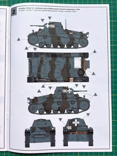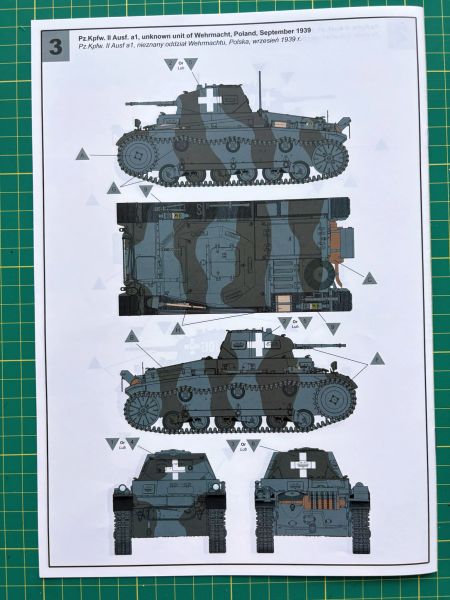 Daje to możliwość wykonania modelu w jednym z trzech wariantów malowania, pierwsze ciemnoszare z okresu międzywojennego, dwa kolejne kamuflażowe z okresu agresji na Polskę w 1939 r.