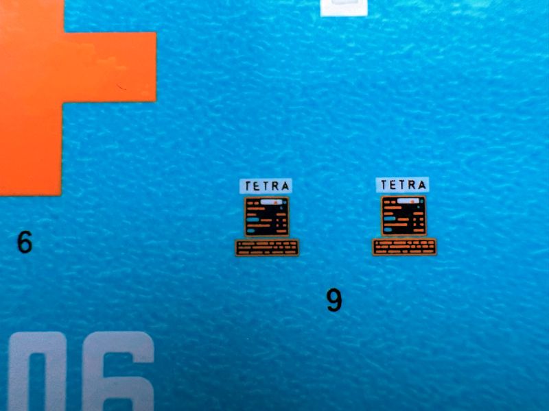 Ponieważ pozostałe wypraski, podobnie jak fototrawione blaszki są identyczne, jak w poprzednich zestawach z wersją A, przejdę od razu do kalkomanii. Średniej wielkości arkusik, na nim krzyże, numery i tabliczki znamionowe.