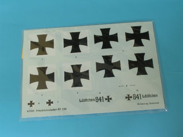 Kalkomania zawiera oznaczenia umożliwiające wykonanie samolotu o własne nazwie „Wolfchen” (Wilczek, Wilczątko) – maszyny obserwacyjnej krążownika pomocniczego DKM „Wolf”. Mamy tu dwie opcje – krzyże na białych polach dla leniwych i bez nich dal tych co białe pola wolą wymalować samodzielnie. Kalkomanie to znany dobry standard Techmodu.