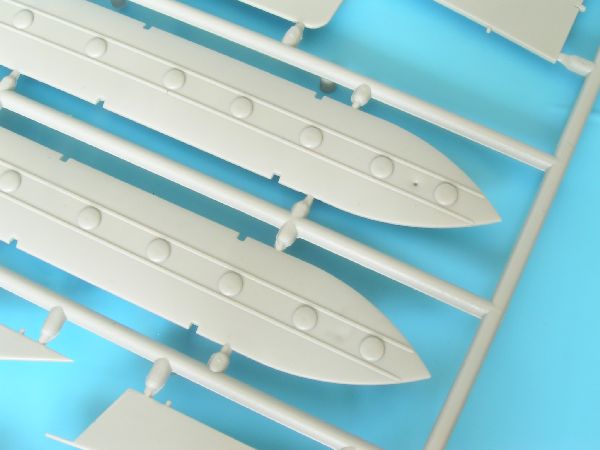 Nadlewki występują w zasadzie tylko w ramce z kadłubem. Ponieważ w tej ramce producent umieścił większość wsporników, trzeba będzie uważać przy ich wycinaniu i obróbce.