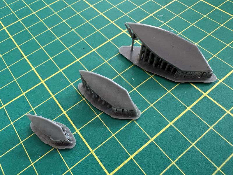 Zaślepki wyglądają tak, jak na powyższych zdjęciach, to także pojedyncze wydruki, które wystarczy jedynie wyciąć i dokładnie oczyścić, żeby dobrze pasowały do swojego miejsca w kadłubie.