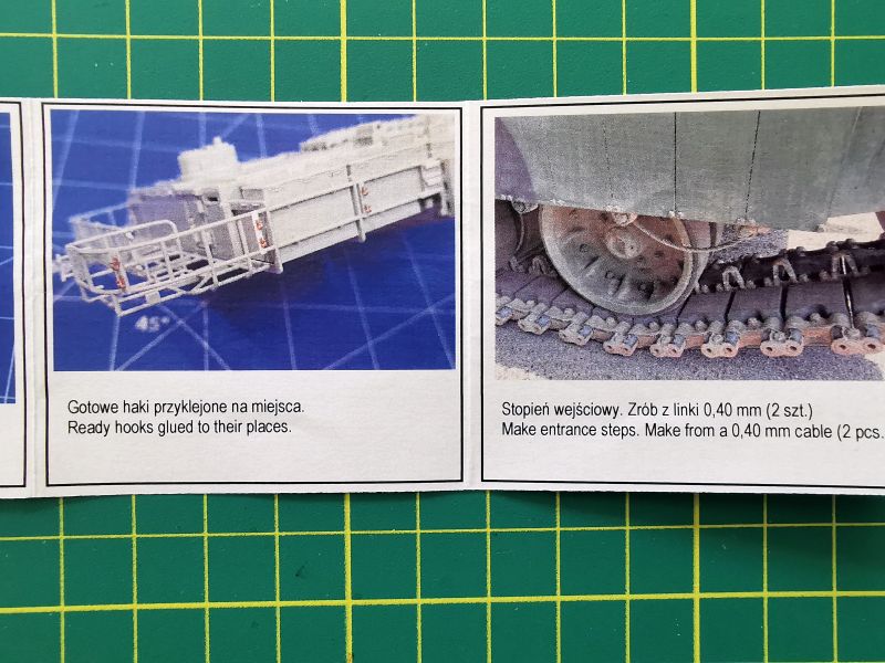 Jak to wszystko prawidłowo zamontować w modelu pokaże nam instrukcja w postaci kolorowej ulotki. Zawiera ona zarówno cześć opisową, jak i zdjęcia. Są one czytelne, no może poza zdjęciem ukazującym sposób montażu wieszaków „T”, ale to jakiś straszny problem, ponieważ po sieci krąży sporo zdjęć polskich K2.