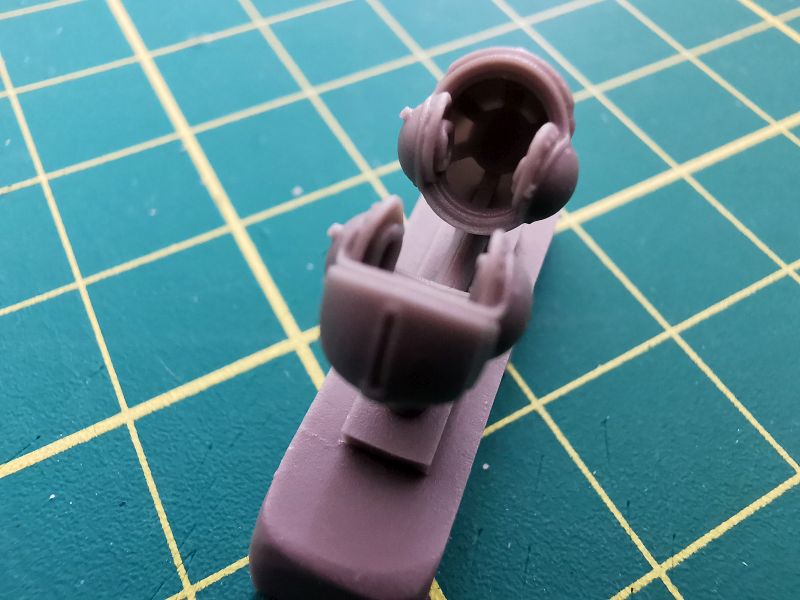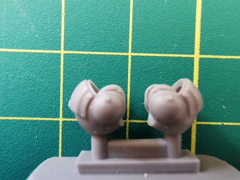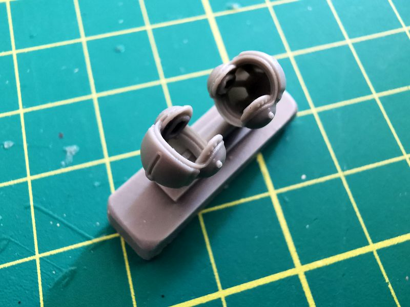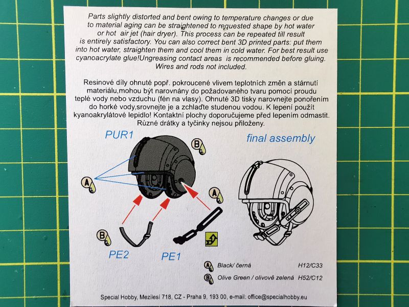 Podstawowe elementy wykonano z oczywiście z żywicy. Są to czerepy obu hełmów i trzeba przyznać, że zrobiono je wielką dbałością o szczegóły. Doskonale widoczne są fasunki znajdujące się wewnątrz, słuchawki czy też przyłbice. Do tego dochodzą wykonane jako elementy fototrawione mikrofony oraz paski uprzęży. Trzeba jednak bardzo uważać przy wycinaniu i obróbce elementów żywicznych z uwagi na umieszczenie kanałów wlewowych na górnych częściach czerepów obu hełmów. Źle wycięte i obrobione zepsują cały efekt, jaki możemy uzyskać.