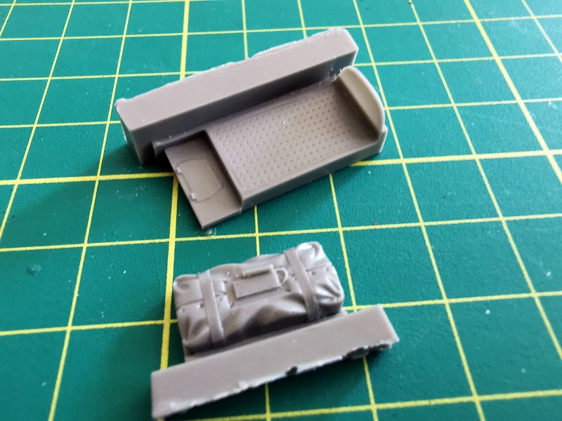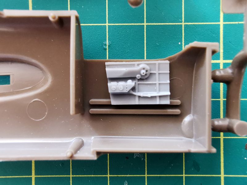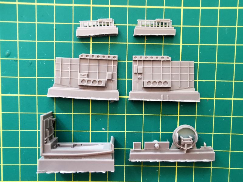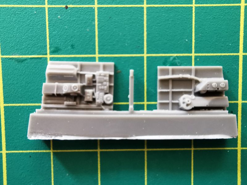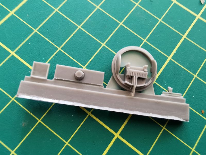 Do tego posłużą nam elementy widoczne na zdjęciach, jest to praktycznie kompletny przedział, nie ma tylko właściwie dolnej części wieżyczki, ale obawiam się, że będzie ona ledwie widoczna spod podstawy na której umieszczono karabiny maszynowe. Ta podstawa to praktycznie jedyny żywiczny zamiennik dla oryginału z tworzywa. Podobnie jak karabiny. Rozważałem zastąpienie luf, metalowymi z Mastera, ale po obejrzeniu tego, co oferuje CMK, raczej sobie dam spokój.