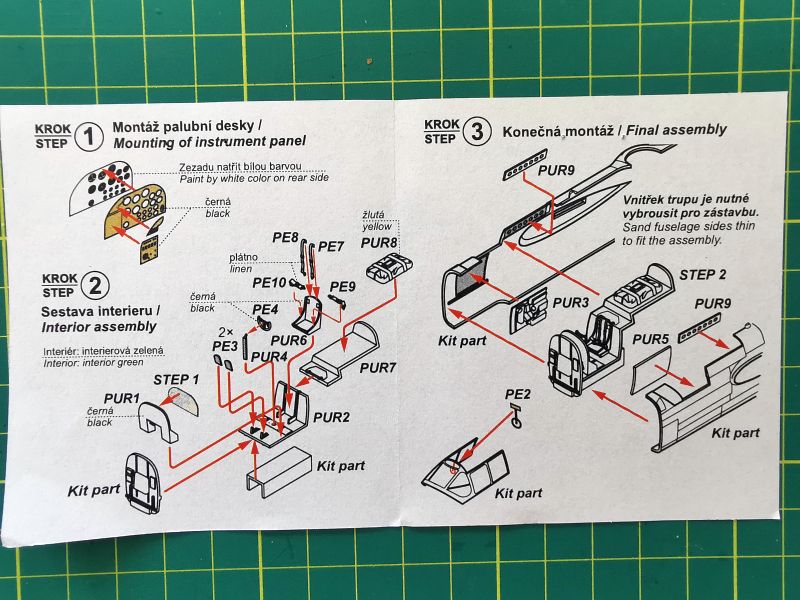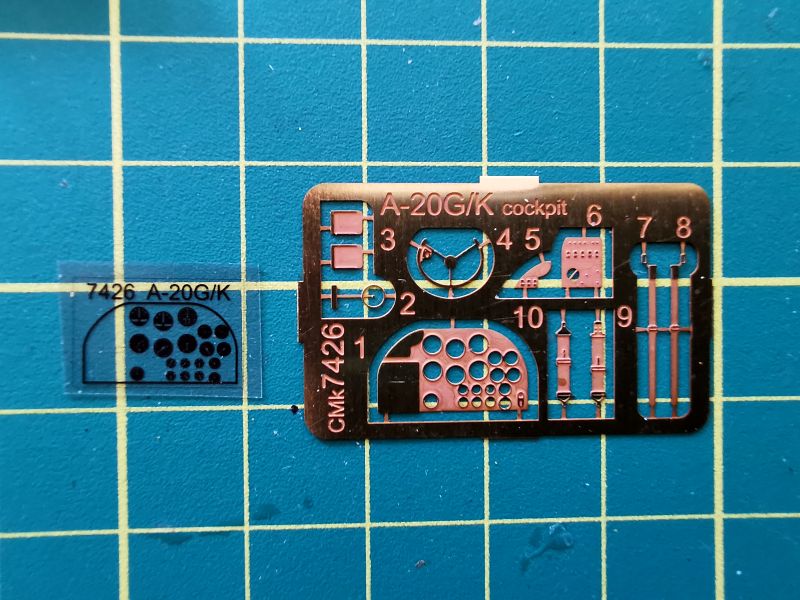 Uzupełnieniem detali żywicznych jest fototrawiona blaszka. Znajdziemy na niej tablicę przyrządów pasy pilota, wolant oraz kilka innych drobiazgów. Jest ona dość podobna do tego, co kiedyś oferowała firma MPM, kiedy to oferowała te modele pod własnym szyldem. Blaszka nie jest barwiona, jak ma to miejsce obecnie, poszczególne detale trzeba pomalować samodzielnie. Tarcze zegarów wydrukowano na przezroczystej kliszy. Po prostu klasyka.
