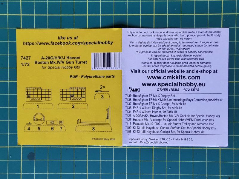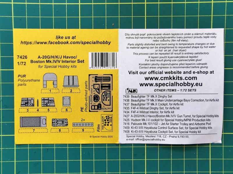 Jeżeli ktoś planuje budowę modelu bombowca Douglas A-20 w skali 1/72, niezależnie od wersji, ma do wyboru zestawy firmy Special Hobby. Producent oferuje niemal wszystkie wersje i odmiany tego samolotu, zaś swego czasu opisywałem jeden z nich, A – 20B. Można zaryzykować stwierdzenie, że jeżeli ktoś już weźmie na warsztat jeden z tych zestawów, to nie ograniczy się do sklejenia prosto z pudełka, ale będzie chciał go zwaloryzować. Obecnie na rynku jest trochę zestawów do waloryzacji, między innymi żywice z CMK, które w ty miejscu chciałbym pokazać bliżej.