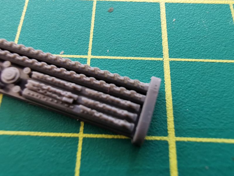 Podobnie wygląda sprawa zestawu łańcuchów kotwicznych do niszczycieli. Jest on oczywiście mniejszy, ale równie szczegółowy jak omówiony powyżej. Jak tylko to całe dobro prawidłowo wyciąć bez uszkodzenia delikatnych przecież detali? Pierwsza rzecz, to zachęcam do odwiedzenia strony producenta, gdzie znajdziemy nie tylko instrukcję montażu poszczególnych akcesoriów w formacie pdf, ale także instrukcję prawidłowego wycinania poszczególnych elementów z wydruku. Producent sugeruje użycia nożyka precyzyjnego, ja bardziej skłaniam się ku tradycyjnej żyletce, ale jestem pewien tego, że oba ostrza, niezależnie od tego, na które się zdecydujemy powinno być nowe, nie używane wcześniej. Kwestia celowości użycia drukowanego osprzętu kotwicznego w przypadku poszczególnych zestawów w mojej ocenie wygląda podobnie jak w przypadku łańcuchów do krążowników. Im straszy zestaw tym bardziej wskazane jest użycie drukowanych zamienników.