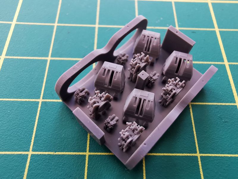 Dzięki nowemu zestawowi Shelf Oddity możemy wymienić praktycznie całą artylerię uniwersalną w niemal dowolnym modelu okrętu, który przenosił ten rodzaj uzbrojenia. Mamy bowiem możliwość wykonania czterech wież, w większości przypadków powinno wystarczyć, a nawet trochę zostanie. Zestaw składa się z wydruku 3D wykonanym z szarej żywicy. Każda z wież składa się z trzech elementów – podstawy, korpusów armat wraz z tylcami oraz maski. Trzeba to złożyć w całość i dokleić metalowe lufy, które z kolei wykonał szczeciński Master, co zresztą widać na torebce z lufami. Prawidłowy montaż armat umożliwi nam instrukcja zamieszczona w formacie pdf na stronie producenta. Złożenie armatek w całość nie powinno być zbyt skomplikowane, a efekt powinien być bardzo dobry, sam zamierzam przetestować ten zestaw na modelu niszczyciela eskortowego typu Hunt II z zestawu IBG Models.