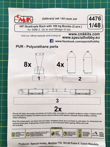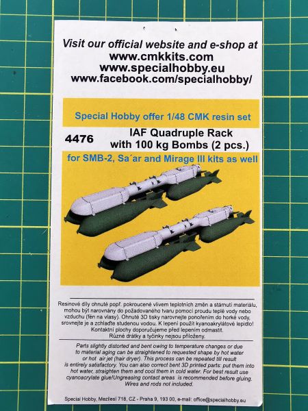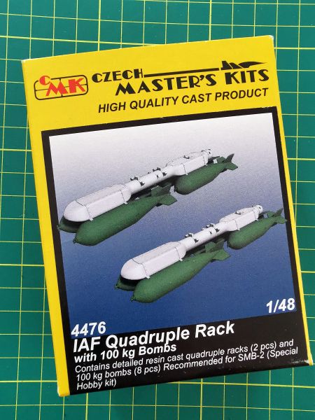 CMK: IAF Qadruple Rack witch 100kg bombs Skala: 1:48 Nr kat: 4476 Typ: odlew żywiczny Dedykowany do: różne |