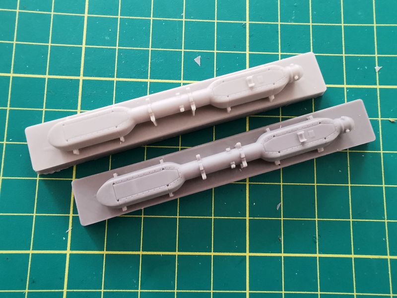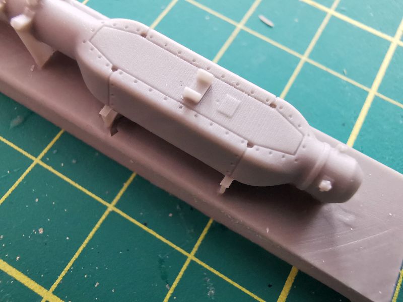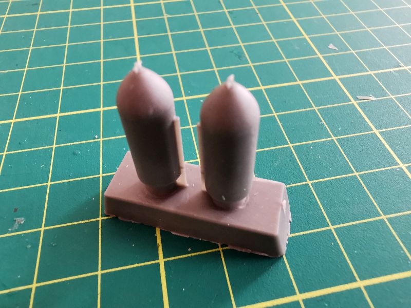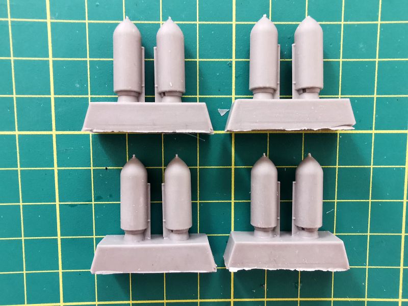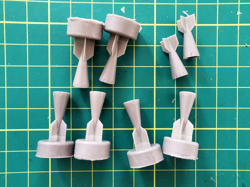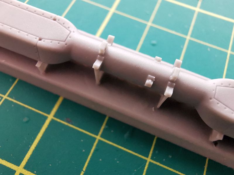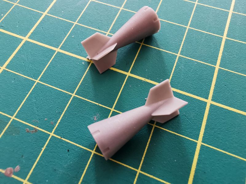 Każda z bomb składa się z dwóch elementów. Korpusów oraz części tylnych wraz ze stabilizatorami. Podobnie jak w przypadku belek, po wycięciu z wlewek z żywicy, wystarczy delikatna obróbka i złożenie w całość.