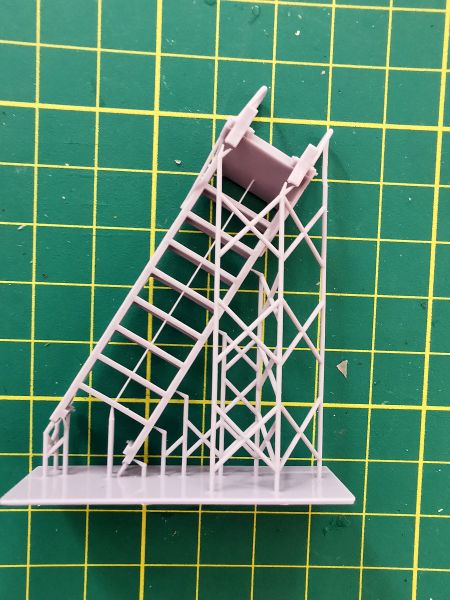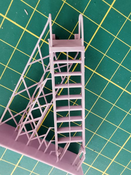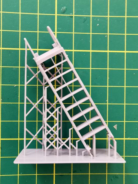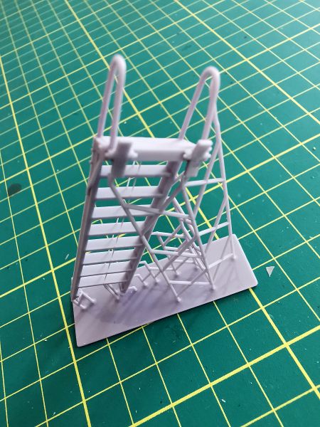 Jest to pojedynczy wydruk wykonany z jasnoszarej żywicy. Wystarczy wyciąć go z suportów pomalować odpowiednim kolorem i oprzeć o burtę modelu. Od razu będzie wyglądać inaczej, zwłaszcza, że projektant odwzorował nawet najdrobniejsze szczegóły konstrukcji drabinki.