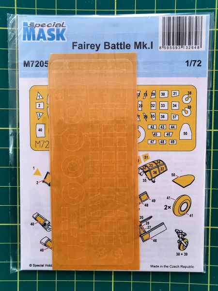 Brytyjski bombowiec Fairey Battle Mk.I okazał się jednym z hitów produkcyjnych powiązanej ze Special Hobby francuskiej firmy Azur Frrom. Samolot ten miał bardzo bogate oszklenie podłużnej kabiny załogi. Maski są tu niezbędne dla prawidłowego pomalowania ram oszklenia.