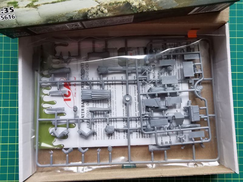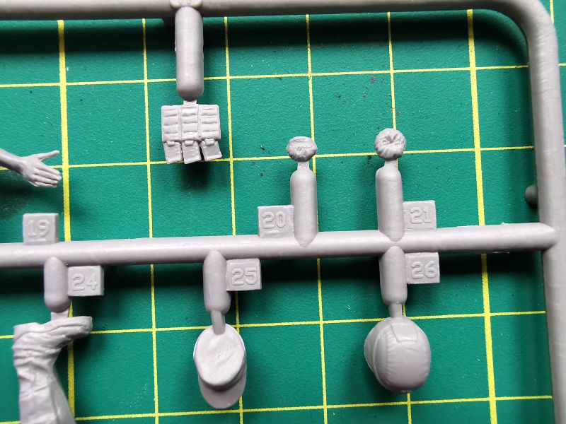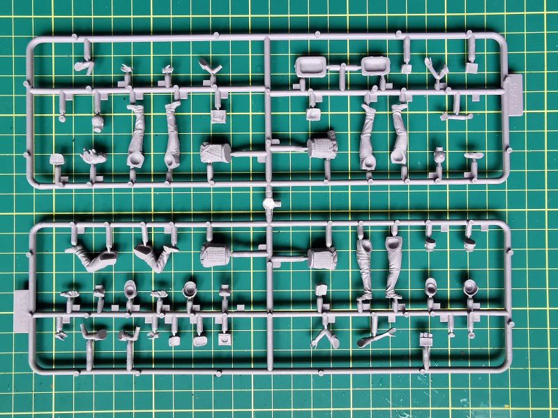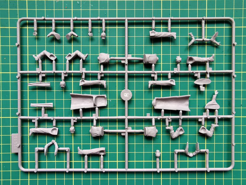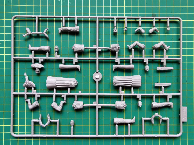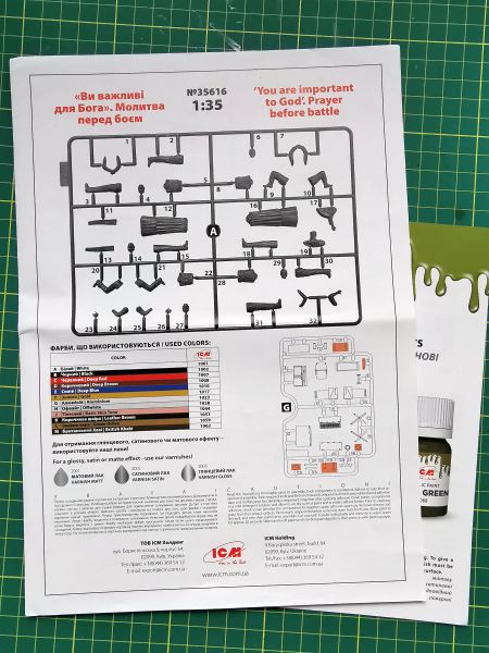 Podstawę zestawu stanowi jedna dość duża wypraska na której rozmieszono elementy, które posłużą nam do wykonania pięciu figurek – kapelana, organisty oraz trzech uczestników nabożeństwa. Także w przypadku tego zestawu, projektant uwzględnił najdrobniejsze szczegóły umundurowania oraz wyposażenia, zarówno wojskowego, jak i liturgicznego, wystarczy spojrzeć na haftowane ornamenty stuły. W tym zestawie nie ma elementów opcjonalnych, instrukcja przewiduje sklejenie figurek w tylko jeden sposób.