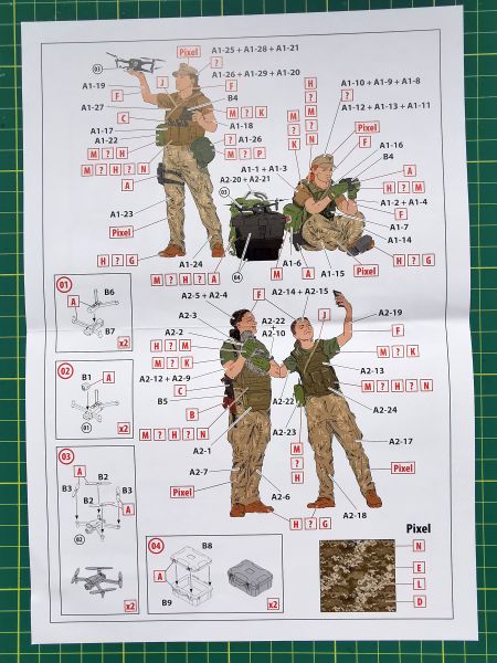 Jak złożyć figurki w całość i co najważniejsze, jak prawidłowo je pomalować dowiemy się instrukcji, która w tym wypadku na postać kolorowej ulotki. Dołączono do niej drugą ulotkę promującą akrylowe farby ukraińskiego producenta. Jedyny problem jaki może się pojawić, zwłaszcza dla mniej wprawionych w malowaniu figurek, to prawidłowe wykonanie pixelowego wzoru na mundurach. Myślę jednak, że istnieją już jakieś patenty, które pomogą wykonać to tak, żeby satysfakcjonowało wykonującego.