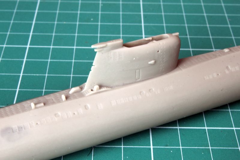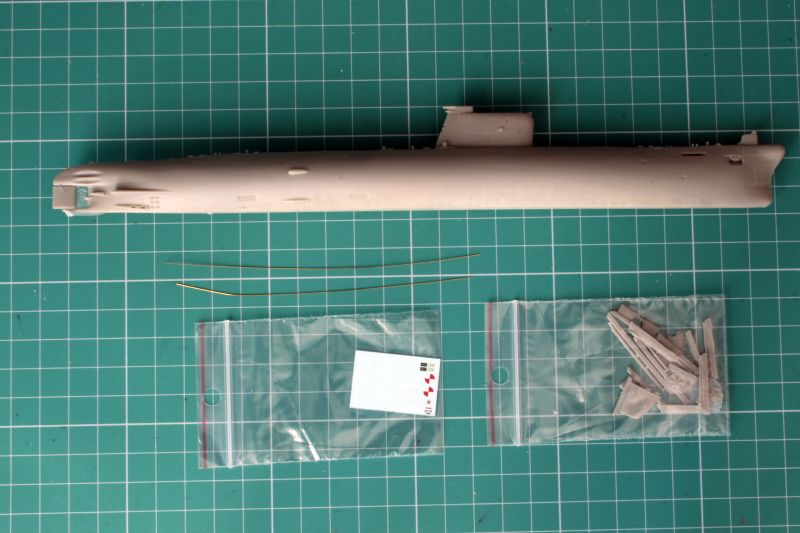 Do kadłubów należy dokleić trochę drobnych detali takich jak stery głębokości, śruby napędowe a także dość sporą ilość anten i peryskopów. Także i tutaj ich jakość wykonania w niczym nie odbiega od kadłubów. Niektóre elementy wykonamy z dołączonych kawałków drutu. Mowa tu o flagsztokach, słupkach relingowych i niektórych antenach.