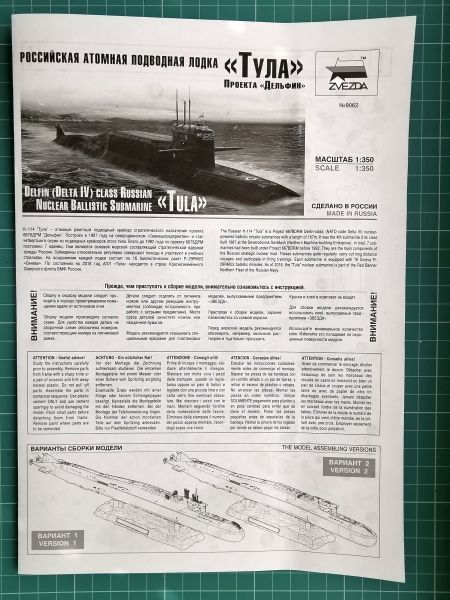 Kiedy pojawiły się pierwsze informacje o tym, że rosyjska Zvezda planuje wydanie modelu okrętu podwodnego typu Delta IV w skali 1/350 od razu pojawiły się spekulacje, że będzie to wznowienie starego zestawu firmy Alanger, który na krótko pojawił się na rynku. Później jednak sam producent uciął te spekulacje, informując, że model to będzie „New tool” czyli opracowany zupełnie na nowo.
