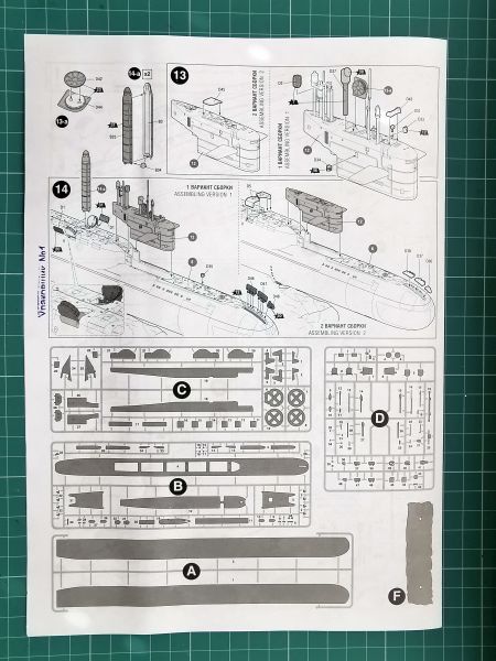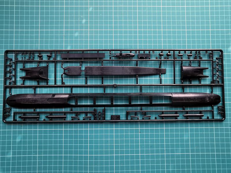 Model z uwagi na sylwetkę i wymiary nie ma klasycznego podziału kadłuba stosowanego przy innych modelach okrętów podwodnych. Kadłub podzielono na część podwodną, nawodną, rufową oraz przedział rakietowy wraz z kioskiem. Podwodna część kadłuba to zawartość pierwszej z ramek.