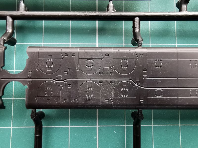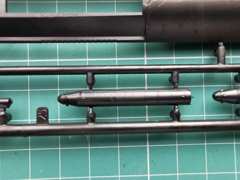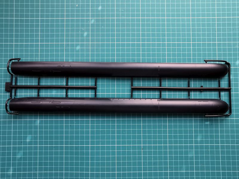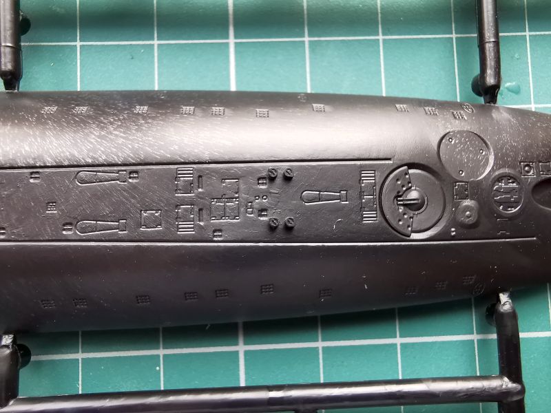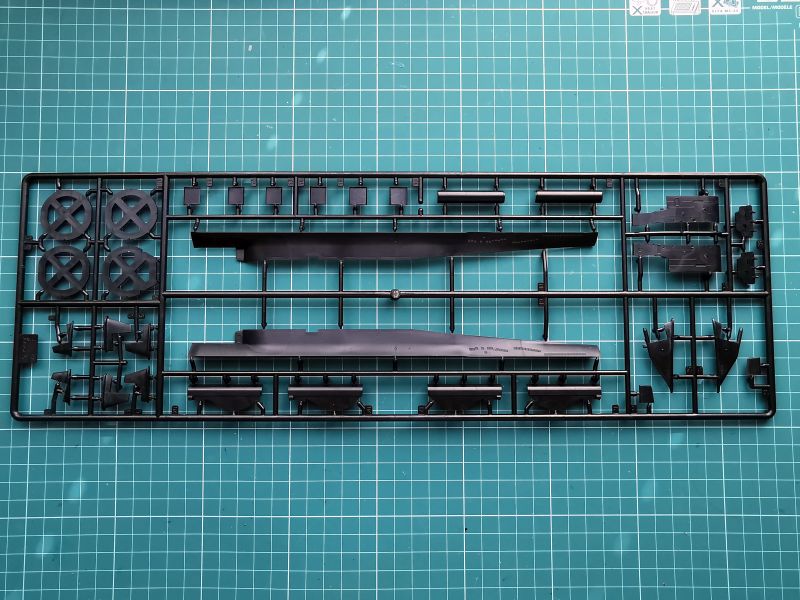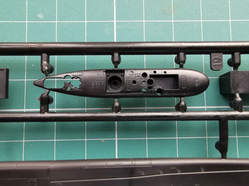 Druga ramka to nawodna część kadłuba, doklejana część rufowa, górna część przedziału rakietowego i kiosku i dość pokaźna liczba detali w tym śruby napędowe, które składają się z trzpieni oraz doklejanych osobno piór.