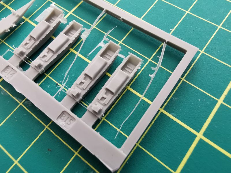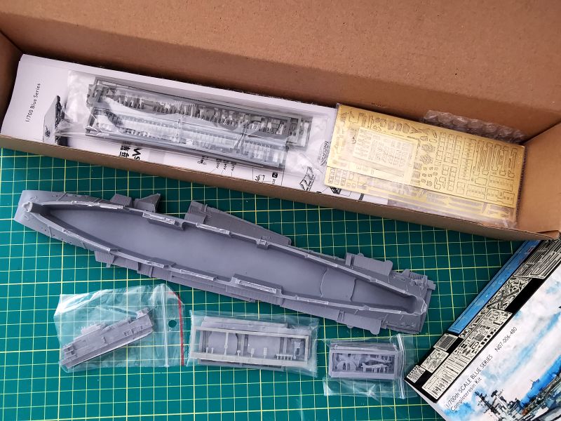 Na razie nadeszła pora na zdjęcie banderoli i otwarcie pudełka. Moim oczom ukazał się… kokon z folii bąbelkowej przez który nic kompletnie nie było widać. Dobrze natomiast zabezpieczało delikatną przecież materię, jaka jest żywica, przed przypadkowym uszkodzeniem. Kiedy udało mi się ten kokon odwinąć, miałem przed sobą dobro, które rozczuli każdego modelarza – okrętowca. Spora ilość precyzyjnych detali z szarej żywicy, bogactwo blaszek fot otrawionych. Wszystko to wykonane z dużym znawstwem zagadnienia i dbałością o najdrobniejsze nawet szczegóły.