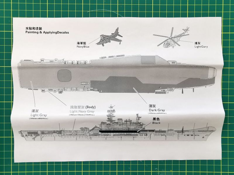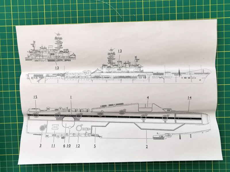 Instrukcja ma postać wydruku na zwykłych biurowych kartkach A4. Bez jakiejś zbędnej finezji, ale za to czytelnie i konkretnie. Nie zmienia to jednak faktu, że tę instrukcję trzeba bardzo solidnie przestudiować przed rozpoczęciem budowy i mieć ją ciągle pod ręką podczas pracy. Rysunki montażowe wyjaśniają niemal łopatologicznie poszczególne etapy budowy, ale jest tego naprawdę sporo. Dwie ostanie strony instrukcji to plany generalne okrętu. Pierwszy to schemat malowania, drugi to instrukcja naklejania kalkomanii. Ponadto pozwolą nam się zorientować w architekturze okrętu, którego model będziemy budować.