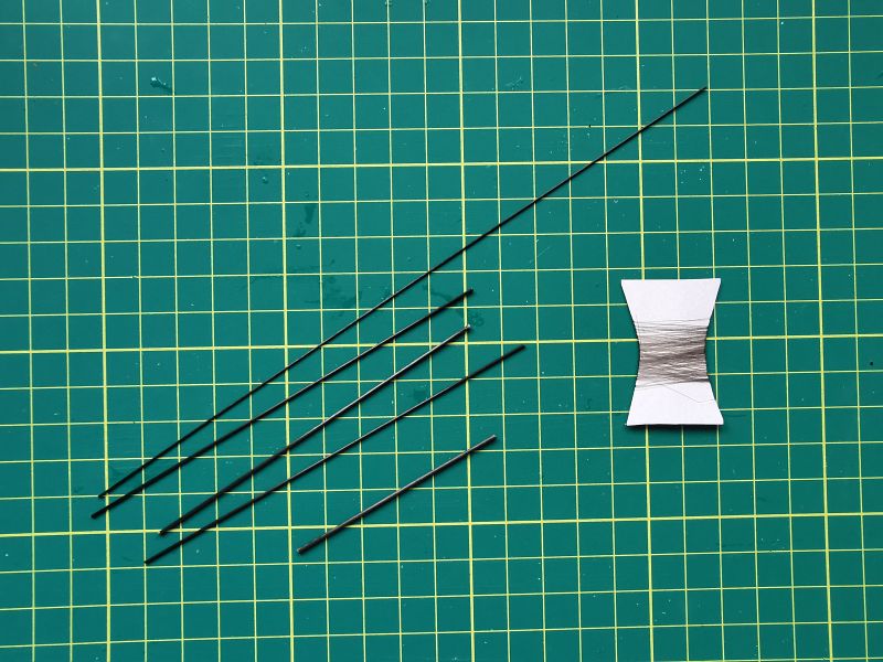 Do wykonania masztów i takielunku mamy standardowy zestaw w postaci prętów węglowych, impregnowanego płótna, nitki oraz bander i proporców wydrukowanych na papierze samoprzylepnych. O ile doskonale to sprawdza się w modelach przeznaczonych do gier bitewnych, o tyle w modelach typowo redukcyjnych trzeba pokusić się o bardziej subtelne rozwiązania. O których swego czasu pisałem i teraz też je zastosuję.