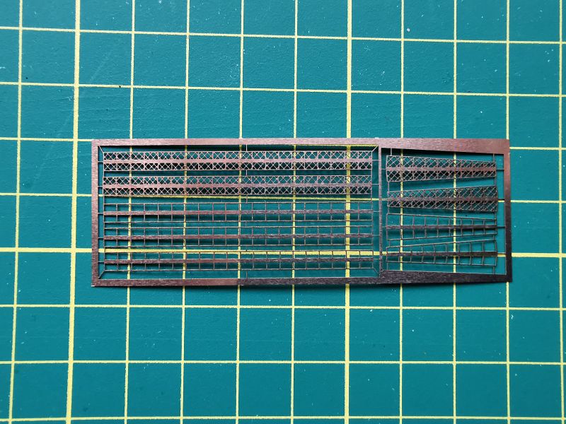 Kolejnym dobrym patentem jest wykonanie wantów w postaci elementów fototrawionych. Wiadomo, że w przypadku modeli żaglowców, wanty to jeden z tych detali, które robią robotę. Tu dostajemy całkiem sporą blaszkę z wantami, z których na pewno trochę nam zostanie do wykorzystania w innych modelach żaglowców. Producent poszedł krok dalej, w postaci blaszki mamy także charakterystyczne podwójne relingi. Po rozpięciu na nich siatek i wypełnieniu zwiniętymi hamakami uzyskiwano dodatkową ochronę dla żołnierzy piechoty morskiej oraz marynarzy podczas walki. Bardzo bory pomysł, tym bardziej, że mamy dwie wersje relingów, z siatkami i bez.