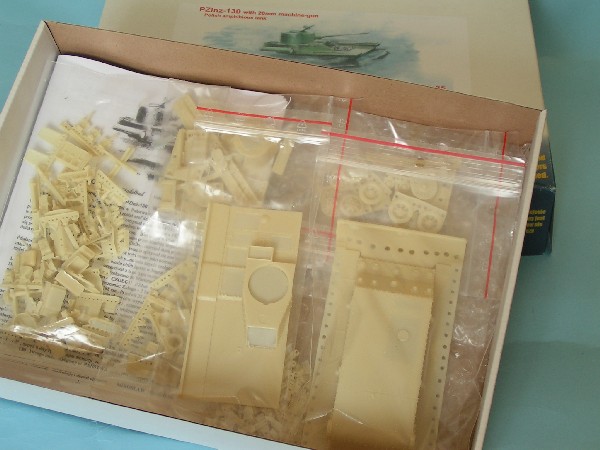 W pudełku zestawu V 13 znajdujemy łącznie 7 torebek z częściami modelu oraz instrukcję montażu i malowania. Ponieważ wozy te nie miały żadnych oznaczeń, w pudełku nie znajdziemy kalkomanii. Nie załączono również części fototrawionych, ale jakość detali żywicznych jest tak dobra, że na dobra sprawę nie są one potrzebne. Wykonano je z najwyższą dbałością o wszystkie nawet najdrobniejsze detale, co więcej każdy z niech jest dokładnie opisany w instrukcji, przez co klejąc model dokładnie poznamy konstrukcję pojazdu.